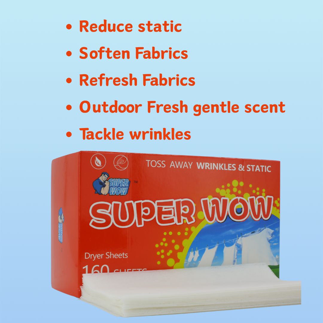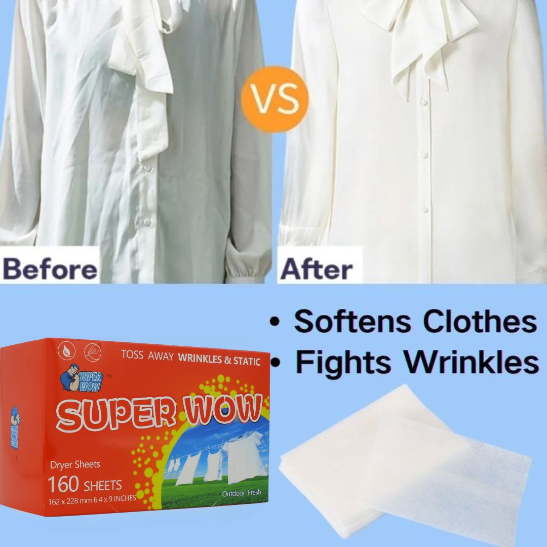 REDUCE WRINKLE: Superwow dryer sheets help reduce wrinkles in your laundry, making clothes smoother and ready for wear.